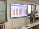 最初に今井先生から教育方針や人数の多い学校の特長、充実した設備やカリキュラムなどの説明をして頂きました。松田先生からは教育の具体的な活動内容や図書に関するお話、小田先生からは6年生の行事紹介や中学受験のお話、高田先生からは内部進学や大学合格実績の話をして頂きました。